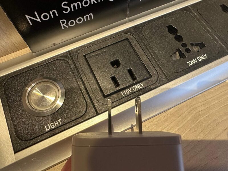 机の上に、日本式コンセントがあるので変換プラグは必要なし。