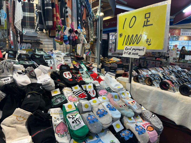 靴下は10枚10,000ウォン(約1,000円)とソウル市場よりも安いですね。