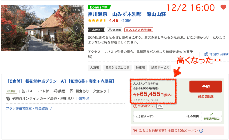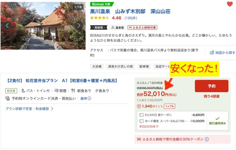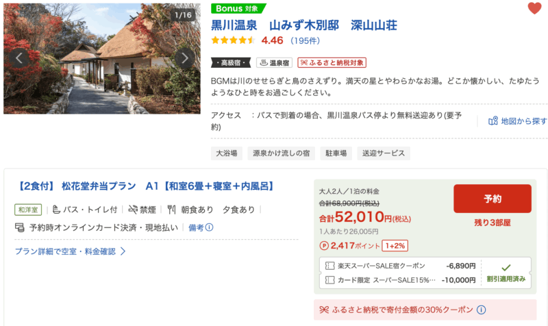 私が狙ってるホテルは「黒川温泉山みず木別邸」です。