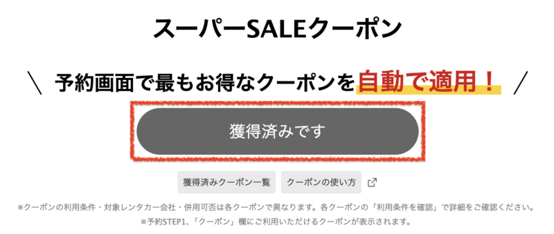 「まとめてクーポン取得」しておけば、自動適用になります。