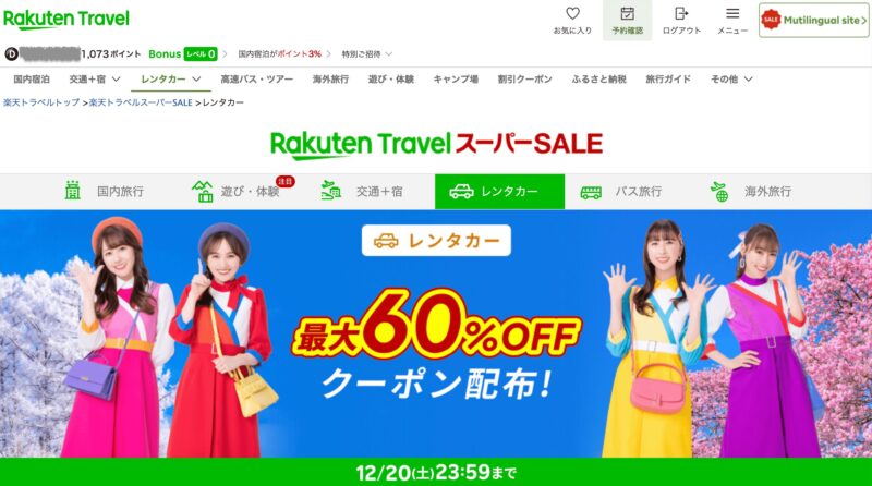 次回というか、12月4日20時から楽天トラベルスーパーセール始まります。